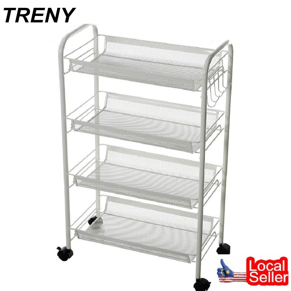 4 Tier White Storage Trolley Kitchen Storage Trolley