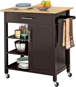 Linon Mitchell Rolling Kitchen Island Cart Trolley Storage W