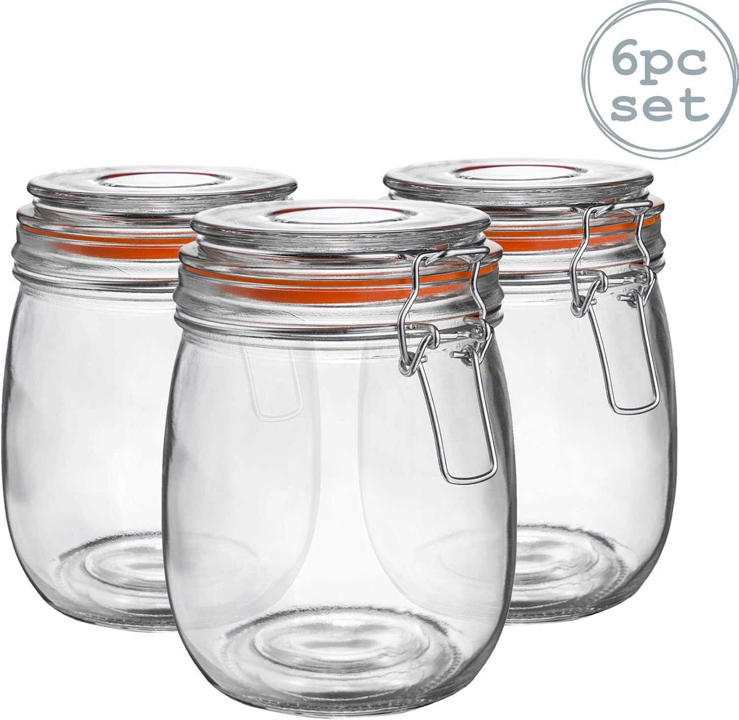 Set Of 6 Clip Top Glass Storage Jars Airtight Vintage Kitchen